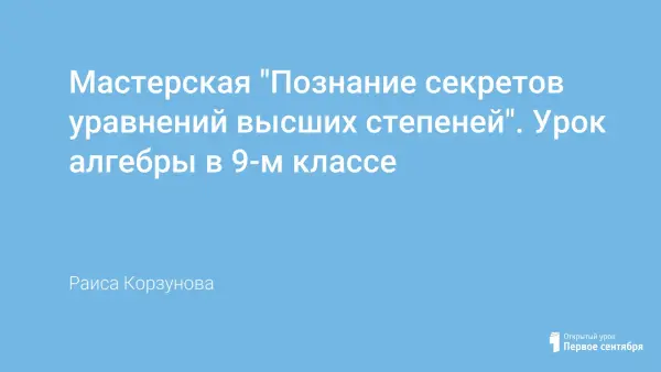 На уроке применяются частные виды квадратных уравнений и их решения, методы введения новой переменной и «переброски» старшего коэффициента. Развивающее значение урока заключается в том, что он воспитывает самостоятельность, ответственность, активность.