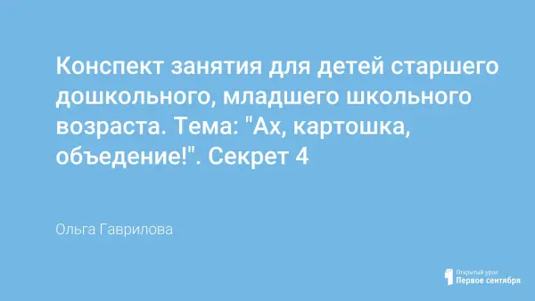 Огородная страна. Сюда вновь пришли ребята со своим экскурсоводом - Чучелом. И разговор пойдет о картошке. Почему картошку называют "вторым хлебом"? Для чего еще, помимо еды, служила картошка. Какие самые любимые блюда у ребят? О чем нужно помнить во время приготовления блюд из картошки? На эти и многие другие вопросы ребята найдут ответы, участвуя в ходе занятия "Ах, картошка, объедение" Участвуя в различных играх с картошкой покажут свою ловкость и волю к победе.