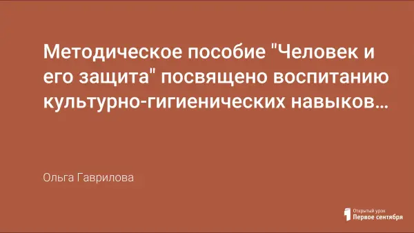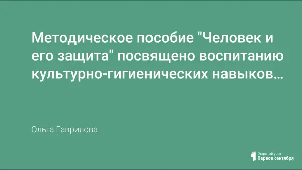 Перед вами методическое пособие "ЧЕЛОВЕК И ЕГО ЗАЩИТА", посвященное воспитанию культурно-гигиенических навыков у детей старшего дошкольного и младшего школьного возраста.