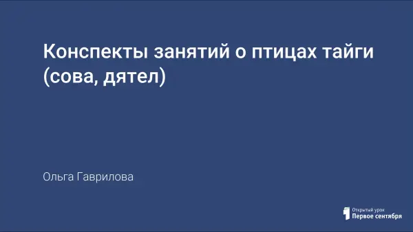 Конспект урока поможет педагогам расширить знания детей о птицах тайги (сове, дятле), повадках и способах передвижения. Используя игровые приемы, педагог сможет привлечь внимание детей к изучаемому материалу. Предложенные стихи, загадки, песенки можно предложить для семейного чтения. Аналогично педагоги могут составить конспекты занятий и о птицах других природных зон.