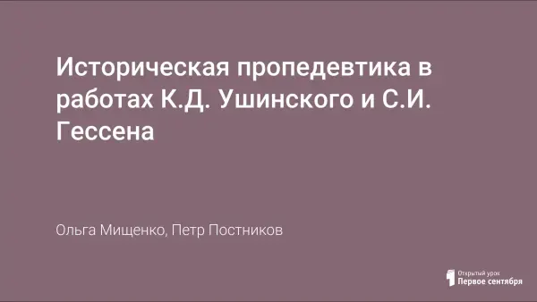 Историческая пропедевтика в работах К.Д. Ушинского и С.И. Гессена