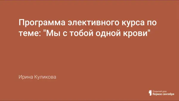 Программа элективного курса "Мы с тобой одной крови" рассчитана на 16 часов, 1 час