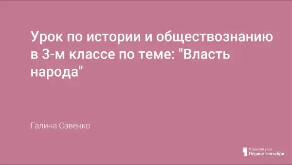 Урок посвящен демократической системе организации власти, которая рассматривается на примере Российской конституции. Главная цель урока - создание образа демократии как особого политического режима, способа управления, при котором единственным источником власти является воля народа. Основная мысль: "При демократии власть принадлежит народу, управление обществом и государством возможно только по воле, "желанию народа".
