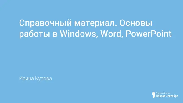 В работе представлен методический материал для освоения системной среды Windows и стандартных приложений (Блокнот, Калькулятор), текстового редактора Word и его приложений, программы для создания презентации PowerPoint.