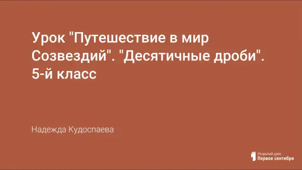 В своей работе автор хочет показать, как можно организовать урок накануне Дня космонавтики. Дети 5-го класса увлеченно работают на нестандартных уроках. Одним из таких является урок по теме "Десятичные дроби", посвященный Дню космонавтики, где дети знакомятся с созвездиями и решают задачи, примеры и уравнения, предложенные им. Урок сопровождается красочной презентацией.