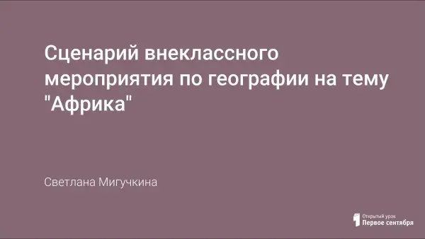 Урок проводится в игровой форме и обобщает знания, полученные при изучении темы "Африка". Формируется система знаний о Земле как планете людей; выявляются особенности природы и хозяйственной деятельности людей в Африке; изучается разнообразие культуры, особенности быта и жизнедеятельности населения Африки.