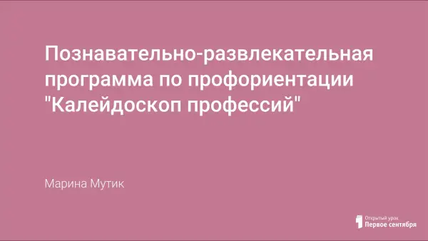 Конкурсно-игровая программа "Калейдоскоп профессий" является мероприятием по профориентации. Данное внеклассное мероприятие позволяет ознакомить учащихся 1 - 7 классов с разнообразным миром профессий. В игровой форме можно выявить знания детей о профессиях, расширить их кругозор, словарный запас, формировать познавательный интерес к людям труда и их профессиям. В игровой программе могут принять участие не только конкурсанты, но и зрители.