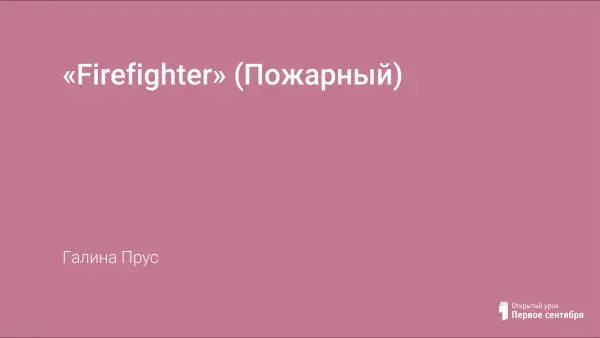 Данные материалы предназначены для студентов 2-го курса специальности 20.02.04 Пожарная безопасность, изучающих дисциплину ОГСЭ.03 Иностранный язык (английский) в учреждениях среднего специального образования. Пособие для самостоятельной работы студентов составлено по учебному пособию «Firefighter» - «Пожарный».