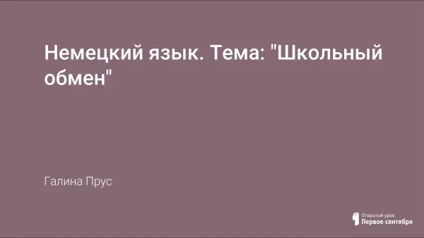 Представлен урок по немецкому языку по теме "Der Schüleraustausch".