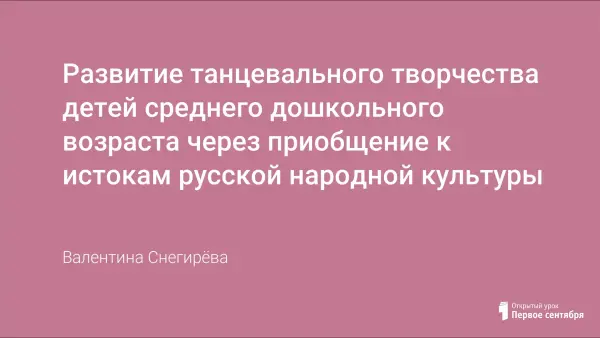 Освоение ребенком близкого ему по духу родного фольклорного наследия – одно из приоритетных направлений в современной педагогике, а воспитательно-обучающие возможности фольклора особенно ощутимы именно в работе с дошкольниками. Погружение ребенка в атмосферу живого слова, подкрепленное выразительным напевом и дополняемое пластикой хореографии, позволяет перейти на иной уровень коммуникации между детьми и взрослыми.