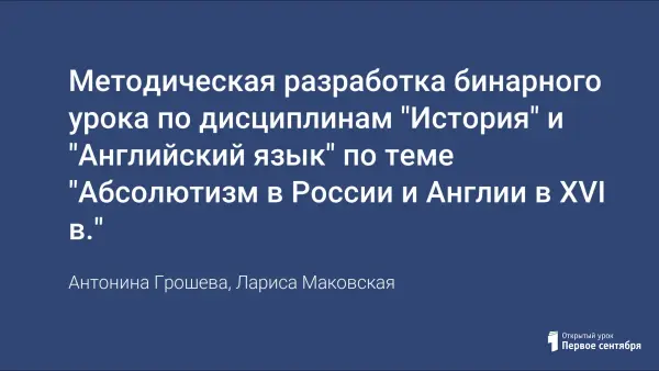 Урок разработан в соответствии с концепцией модернизации российского образования. При планировании урока применялись модульные технологии, основанные на компетенциях. Интеграция дисциплин дает возможность преодолеть дисциплинарную разобщенность научного знания, высвобождается учебное время, усиливаются внутрипредметные и межпредметные связи, расширяются сферы получаемой информации, подкрепляется мотивация в обучении. Цель урока – исследование развития абсолютизма в России и Англии в XVI веке.