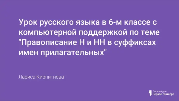 Предлагаемый урок русского языка в 6-м классе с применением компьютерной презентации даёт возможность повысить темп современного урока, увеличить объём упражнений за счёт сокращения затрат времени на списывание заданий. Компьютер как современное техническое средство является уникальным средством для поддержания интереса к уроку, создания атмосферы радости и удовольствия от получения знаний.