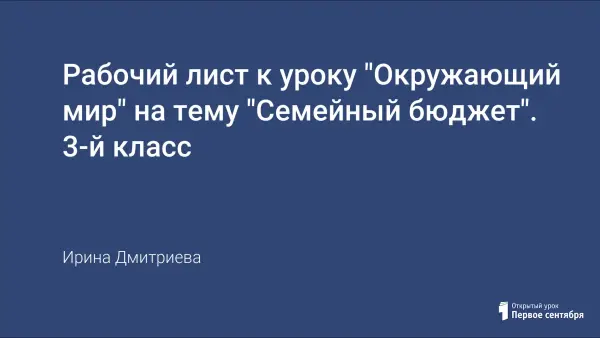 Представлен Рабочий лист по теме "Семейный бюджет" к уроку «Окружающий мир» в 3-м классе.