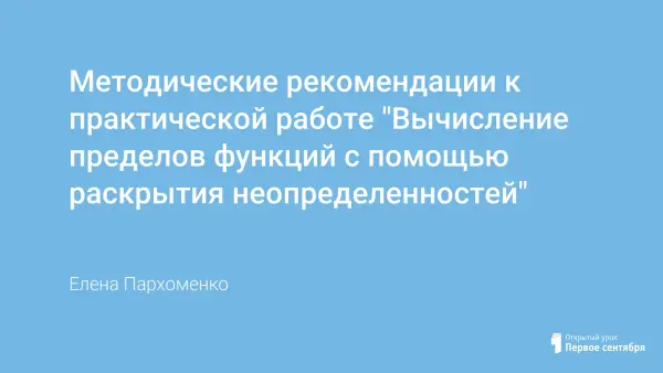 Данные методические рекомендации содержат теоретический и практический материал по теме для самостоятельного изучения способов и приёмов вычисления пределов функции.