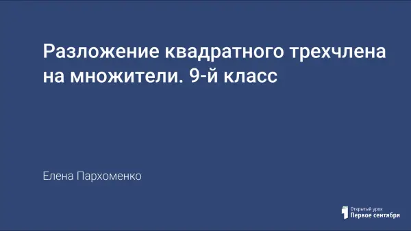 Представлен конспект урока алгебры в 9-м классе – это урок закрепления и систематизации знаний с его традиционной структурой, посвященный проверке, оценке и коррекции знаний и способов действий по разложению квадратного трехчлена на множители. На уроке предложены такие формы работы, которые позволят эффективно повторить и закрепить знания, умения и навыки по данной теме.