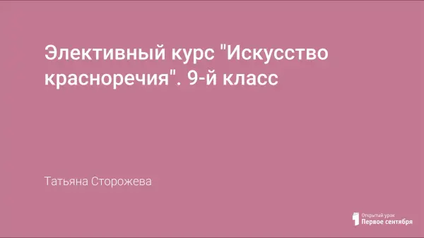 Программа курса "Искусство красноречия" рассчитана на учащихся 9-х классов общеобразовательных школ.