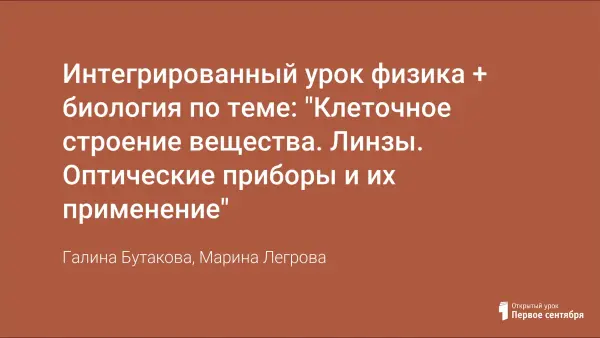 Интегрированный урок физика + биология по теме: "Клеточное строение вещества. Линзы. Оптические приборы и их применение"