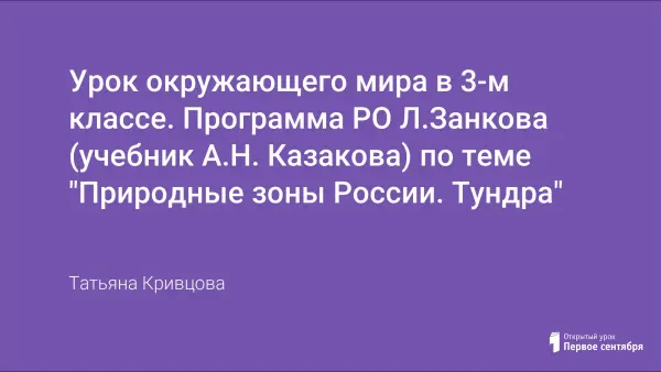 Урок даёт целостное представление о суровых климатических условиях тундры ее флоре и фауне. Развивает наблюдательность, умение анализировать теоретический материал. Воспитывает чувство коллективизма, ответственности, бережное отношение к природе.