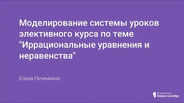 В данной статье предложено моделирование системы уроков элективного курса по теме "Иррациональные уравнения и неравенства"