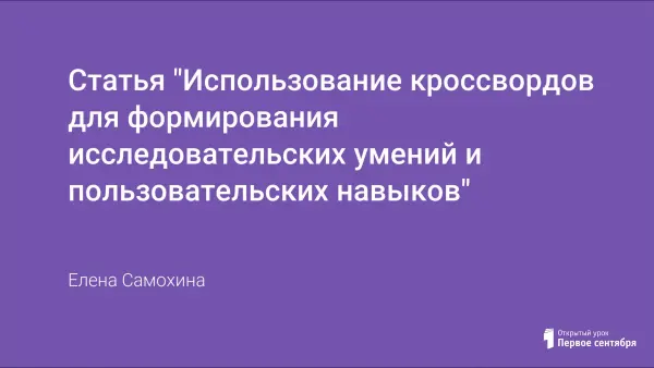 Большую помощь учителю в формировании и развитии исследовательских умений оказывают разнообразные задания, связанные с составлением, разгадыванием и оформлением кроссвордов.