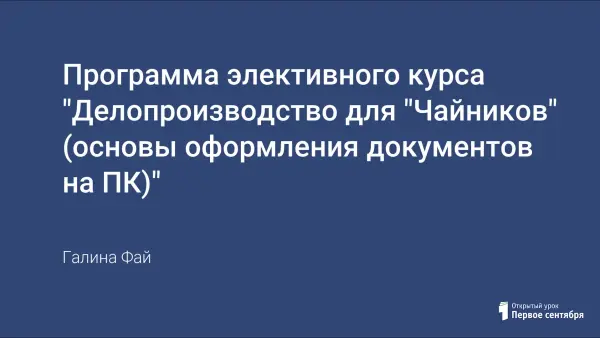 Программа элективного курса "Делопроизводство для "Чайников" (основы оформления документов на ПК)"