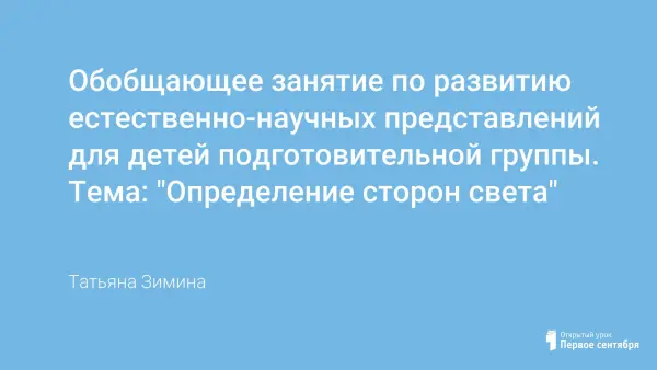 Проводимое занятие является обобщающим по двум темам: "Определение сторон света" и "Магниты и магнитные свойства предметов". Ему предшествует огромная предварительная работа, в которой участвуют воспитатель, дети и родители. Основной задачей является систематизация знаний детей о различных способах определения сторон света. В ходе занятия используются элементы театрализации и опытно-экспериментальной деятельности. Занятие проходит в виде путешествия в сказочный лес.