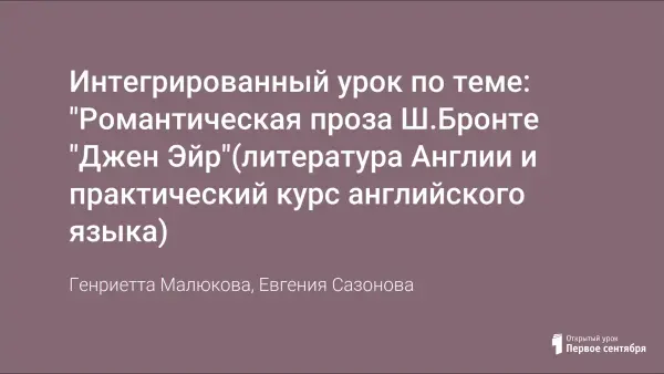 Интегрированный урок по теме: "Романтическая проза Ш.Бронте "Джен Эйр"(литература Англии и практический курс английского языка)