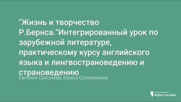 Открытый урок по зарубежной литературе, интегрированный с практическим курсом английского языка и лингвострановедением и страноведением, по теме "Жизнь и творчество Р.Бернса" имеет целью ознакомление студентов с творчеством поэта и систематизацию уже имеющихся у студентов знаний по теме, полученных в курсе лингвострановедения и страноведения и на практическом курсе языка.