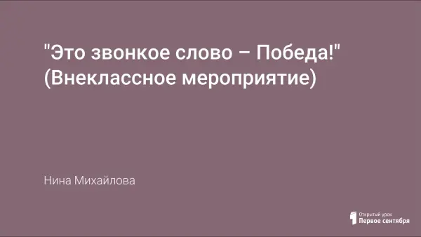 В работе представлен сценарий внеклассного мероприятия, посвященного Дню Победы.