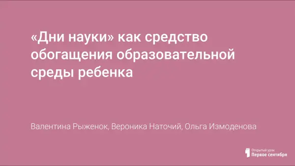 «Дни науки» как средство обогащения образовательной среды ребенка