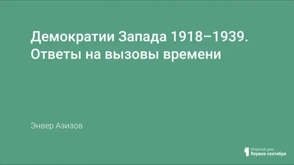 Урок Всеобщей истории в 11-м классе по технологии РКМЧП раскрывает причины, ход, результаты исторического выбора демократий Запада в межвоенный период. Воспитывается принятие ценности компромиссов в общественной жизни.