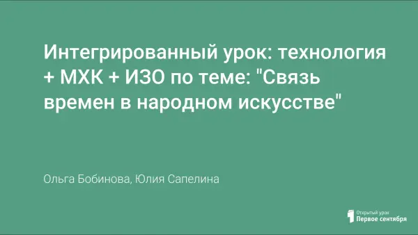 Интегрированный урок: технология + МХК + ИЗО по теме: "Связь времен в народном искусстве"