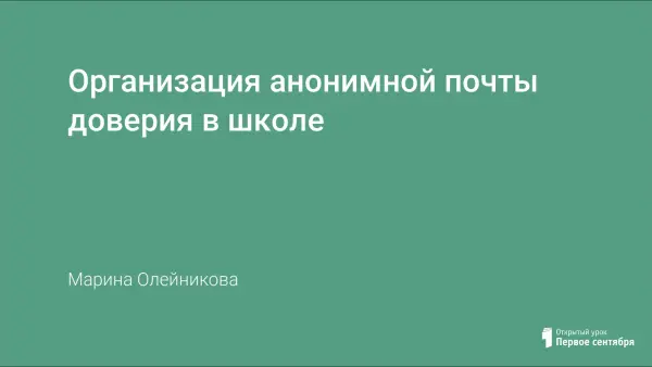 Статья посвящена организации анонимной почты доверия в школе. Статья основывается на богатом опыте автора.