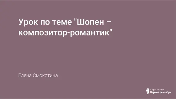 Предлагаю вашему вниманию урок музыки в 7-м классе по теме: "Ф.Шопен - композитор-романтик". Урок проводится в первом полугодии при изучении темы "Музыкальный образ".