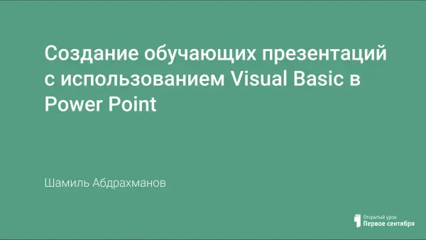 В этой статье описывается, опыт по переходу в среду визуального программирования учащимися. А также принципы программирования на VBA(Visual Basic for Application) в Microsoft Office.Создание обучающих презентаций с использованием Visual Basic в Power Point.