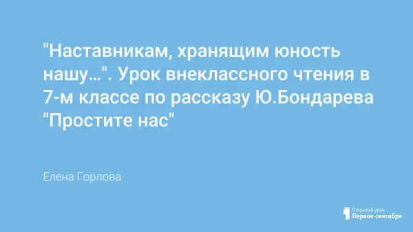 Рассказ Юрия Бондарева "Простите нас!", соотнесённый с библейской и пушкинской нравственной традицией, поможет ученикам задуматься о памяти, совести, долге, благодарности, нравственных понятиях, без которых трудно считать себя человеком.