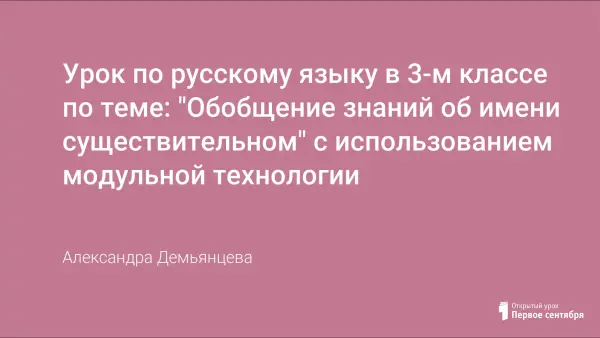 В III четверти 3-го класса (1–4) по русскому языку изучается тема "Имя существительное как часть речи", на которую отводится 5 часов. Четыре урока отводится на повторение и закрепление знаний по данной теме, полученных в предыдущие годы обучения. Пятый урок по теме "Обобщение знаний об имени существительном" проводится с использованием модульной технологии. На этом уроке ребята учились видеть признаки имен существительных, а по ним находить их среди других частей речи, что поможет им в дальнейшем при изучении рода и числа имени существительного, а далее в 4-м классе – определять склонение и падеж этой части речи для развития навыка грамотного письма. После модульного урока определена группа учащихся, у которых есть проблемы в определении частей речи, и спланирована индивидуальная работа.