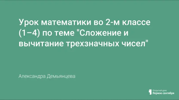Урок проводился по модульной технологии во 2-м классе. Предварительно ученики изучили этот же материал для двузначных чисел, а также в течение восьми уроков тему «Нумерация трехзначных чисел». Первая тема помогла ученикам провести аналогию, а вторая – использовать названия разрядов для правильной записи примеров.