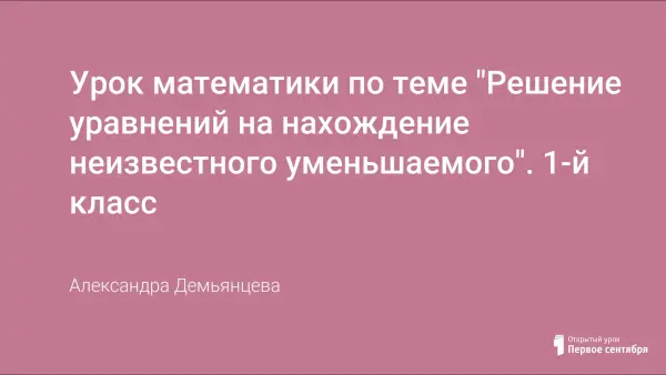 Урок математики по программе «Школа-2100» проведен для учителей кафедры начального обучения. Урок использует модульную технологию. Цель: познакомить со способом решения уравнений на нахождение неизвестного уменьшаемого на основе взаимосвязи между частью и целым.