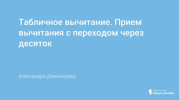 На основе знаний алгоритма сложения с переходом через разряд и зависимости между действиями сложением и вычитанием ученики находят с помощью учителя способы вычитания однозначного числа из двузначного с переходом через десяток. На последующих уроках учениками закрепляется знание, полученное на этом уроке.