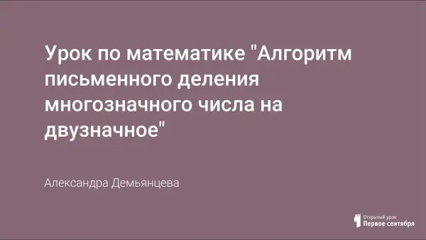Цели урока: узнать письменный приёмом деления на двузначное число; совершенствовать вычислительные навыки, отрабатывать умение решать задачи изученного вида;