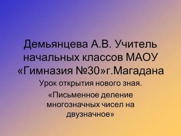 Урок по математике "Алгоритм письменного деления многозначного числа на двузначное"