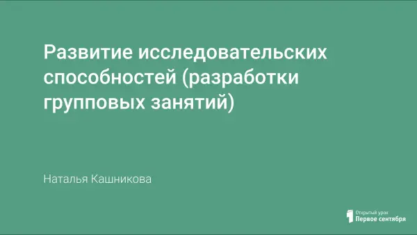 От современного образования требуется не простое фрагментарное включение методов исследовательского обучения в образовательную практику, а целенаправленная работа по развитию исследовательских способностей, специально организованное обучение детей умениям и навыкам исследовательского поиска. Это важно ещё и потому, что самые ценные и прочные знания добываются самостоятельно, в ходе собственных творческих изысканий. Мною была разработана программа группового занятия "Развитие исследовательских способностей". Предлагаю разработку групповых занятий.