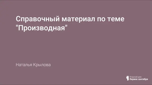 В справочном материале представлены формулы и правила нахождения производных, схема исследования функции с помощью производной и алгоритм нахождения наименьшего и наибольшего значения функции на отрезке; в справочнике приведены примеры нахождения производных, различные задачи на касательную к графику функции, показано исследование и построение графика функции. Справочный материал удобно использовать и на уроках по теме "Производная", и при подготовке к экзамену.