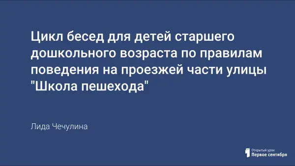 Данная методическая разработка – цикл бесед для детей старшего дошкольного возраста по правилам поведения на проезжей части улицы. Этим ребятам в скором времени предстоит самостоятельно ходить в школу без сопровождения взрослых. В "школе пешехода" дети научатся правильно вести себя, быть внимательными, аккуратными на проезжей части улицы. Беседы проводятся в сюжетно-ролевой игре "Школа пешехода". Роль учителя выполняет ребенок совместно с воспитателем, который предварительно проводит подготовку к каждому "уроку". Полученные знания и умения закрепляются в сюжетно-ролевых играх, экскурсиях, развлечениях, викторинах.