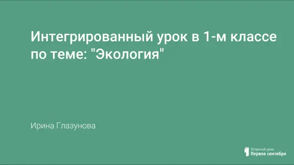 Дети любят уроки необычные, запоминающиеся, яркие, эмоциональные – нетрадиционные, где они могут в полной мере раскрыть свои способности. В работе представлен интегрированный урок: 1-й класс "Экология".