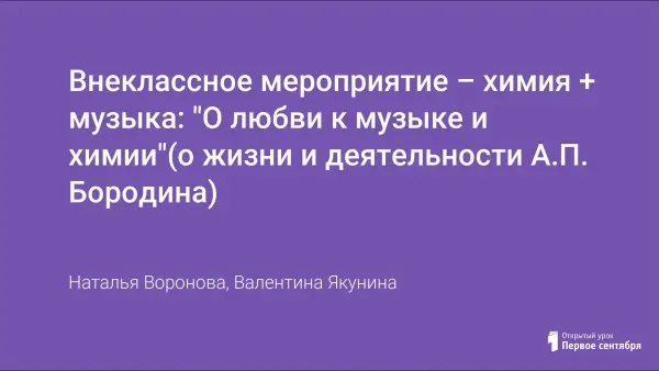 Внеклассное мероприятие – химия + музыка: "О любви к музыке и химии"(о жизни и деятельности А.П. Бородина)