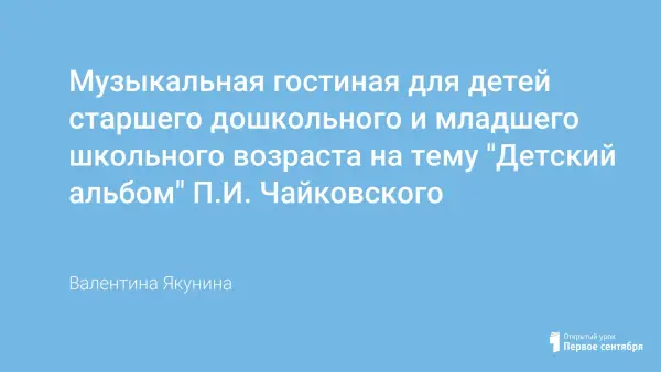 В работе представлен сценарий проведения «Музыкальной гостиной» для детей старшего дошкольного и младшего школьного возраста на тему «Детский альбом П.И. Чайковского»