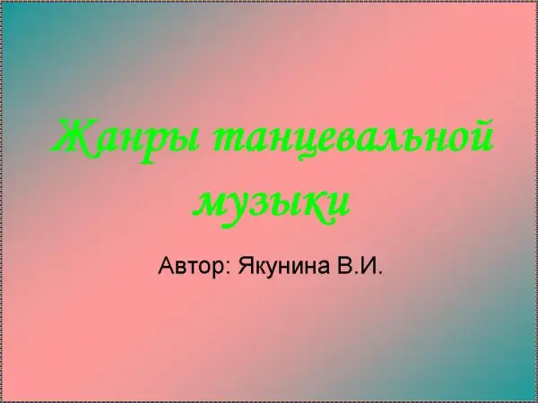 Урок решает задачу практического освоения студентами темы «Жанры танцевальной музыки» (полонез, вальс, мазурка, гавот, менуэт, полька) путем интеграции музыки и ритмики.