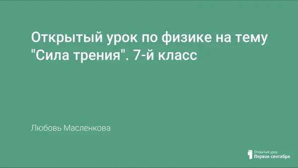 Открытый урок по физике на тему "Сила трения". 7-й класс
